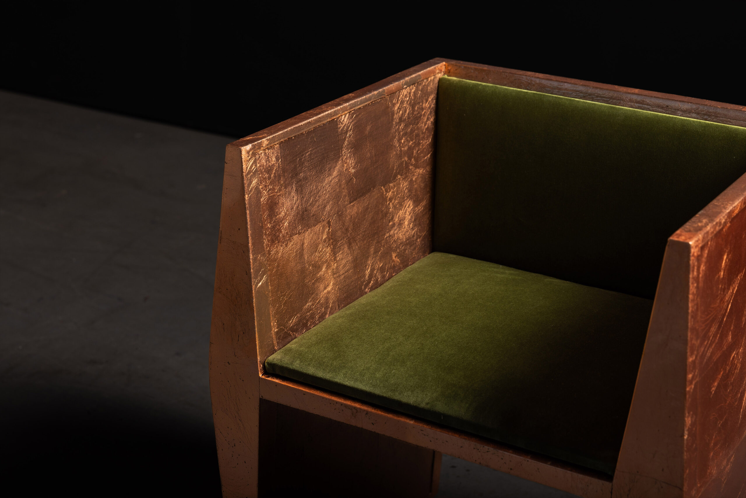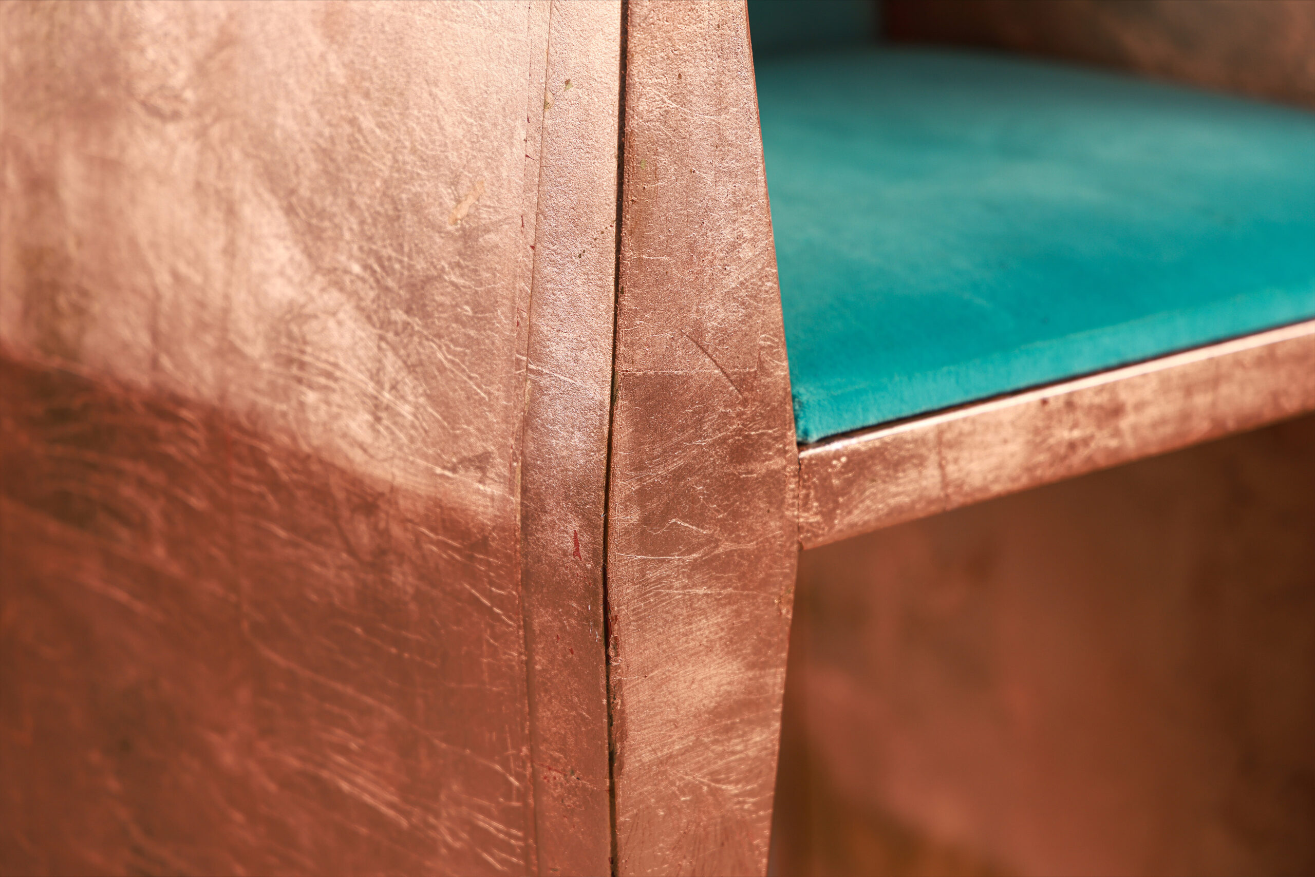 Original Design & Frame Version | A Radiant Pair of Artistry Request A QuoteThe Sapience Chair Copper Leaf Edition by SENTIENT comes as a radiant pair, blending solid and open designs in hand-finished copper leaf, crafted to elevate any interior.