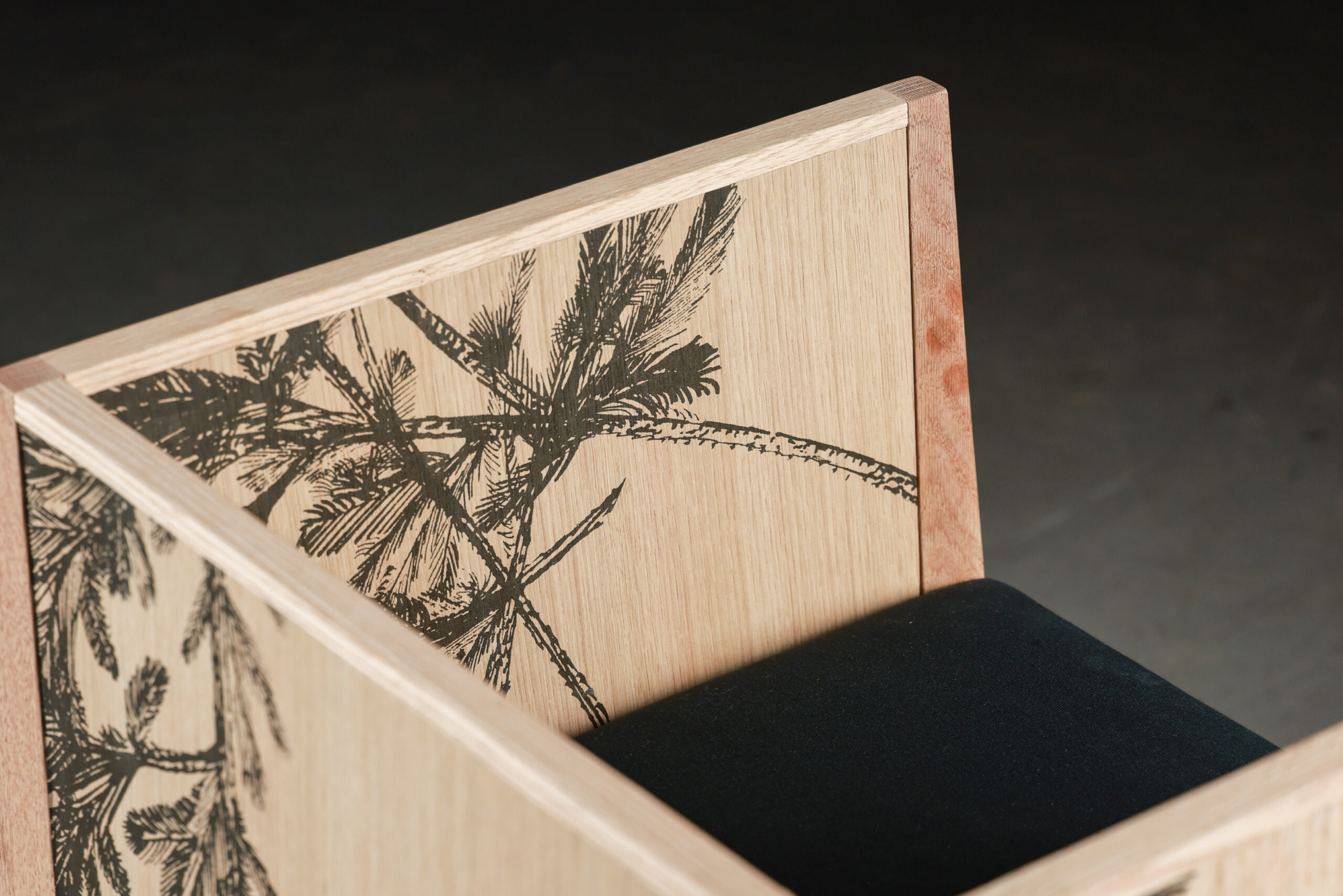The Sapience Chair, known for its balance of form and fine craftsmanship, becomes a storytelling canvas under Riccardo Vecchio’s vision. His imagery is part of a broader initiative, 31 Degrees, which focuses on environmental justice and the importance of tree coverage in urban areas. By imprinting these ideas onto the Sapience Chair, Riccardo transforms the piece into a symbol of nature’s role in our lives and the disparities that exist in its presence. This collaboration pushes the boundaries of what furniture can represent—a call for awareness and change, a blend of fine art, activism, and high design—showcasing SENTIENT’s belief in the power of art to inspire dialogue and transformation.