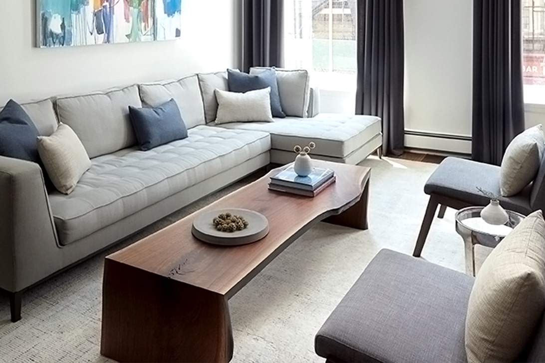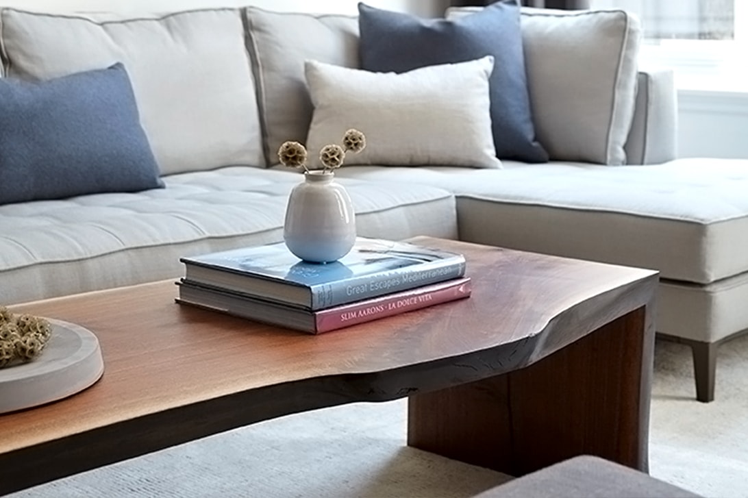 Working with an interior designer is a SENTIENT specialty. For Anne Chessin Designs, we created a custom live edge coffee table of American black walnut and a solid wood dining table supported by steel wishbone legs. By working with an interior designer and utilizing custom work, we bring to our homes a personal quality that cannot easily be acquired in our time of quick fix and mass production.