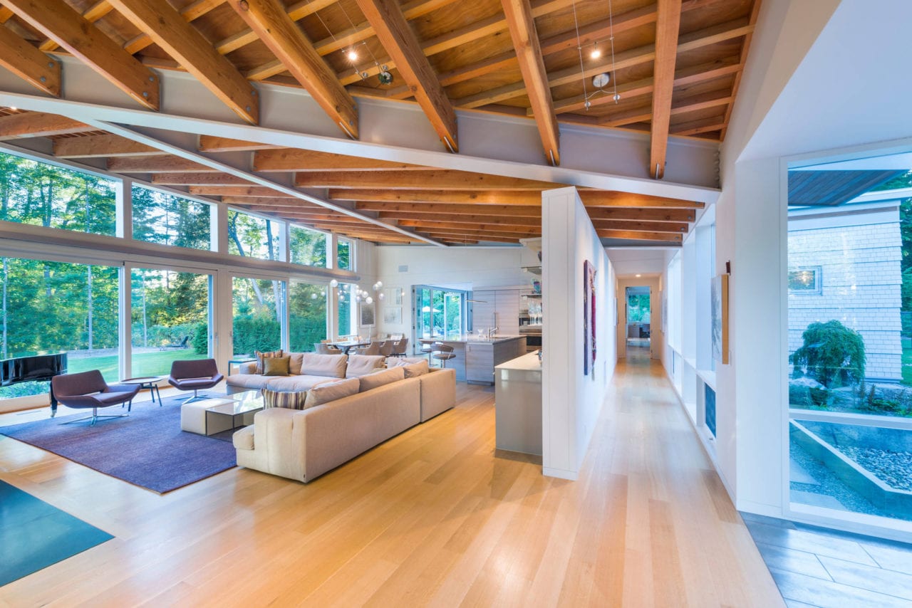 The vision of an architect often transcends the outer shell into the elements that reside within. This exemplifies the Massachusetts project, The Tanglewood House, designed by Flavin Architects. For this project, SENTIENT produced custom wood furniture, including a Colorado Table in American Black Walnut. Here the interior and exterior seam seamless in there mimicking of line and form, bringing to light the architect’s total vision.