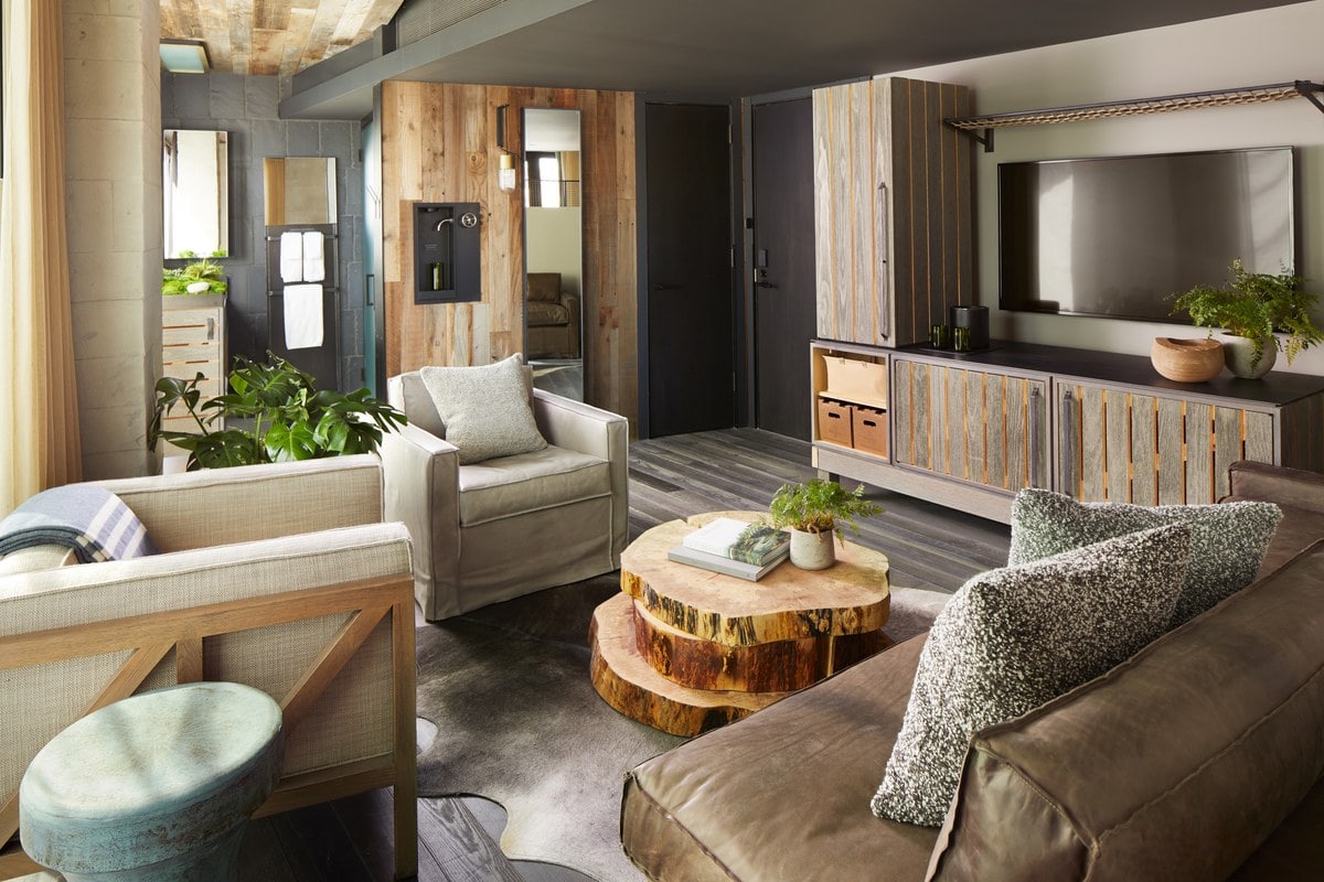 Within the 1 Hotels Brooklyn Bridge & Central Park project, SENTIENT provided a reclaimed wood beam hotel lobby coffee table designed as live edge ‘cookie’ slabs of Spalted Maple. We also enriched the hotel lobby furniture with custom solid wood cocktail tables, designed with aesthetic excellence and manufactured with great attention to detail. It was invigorating to witness these lobby furniture ideas come to life, anchoring the inspiring and nurturing space reminiscent of Central Park.