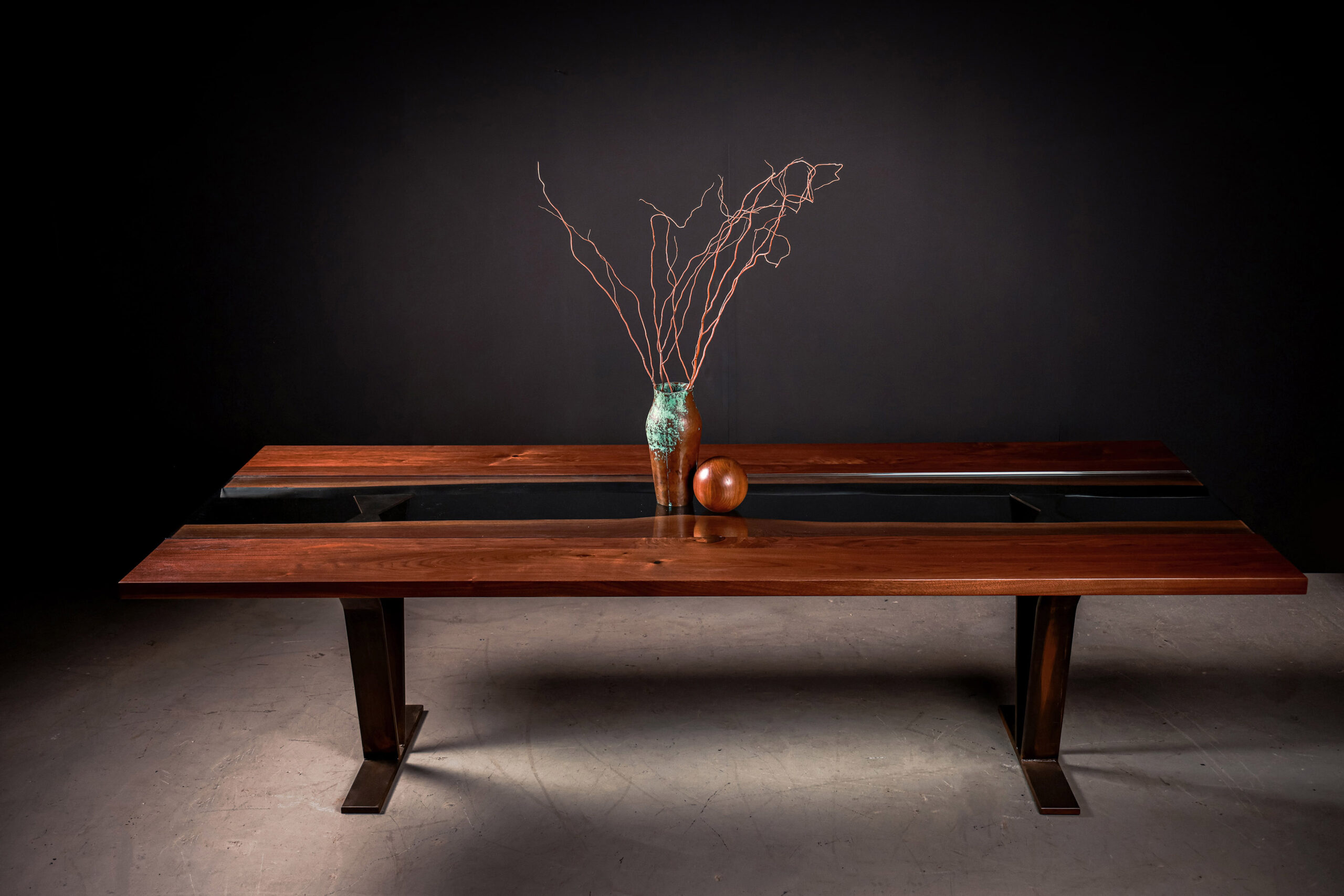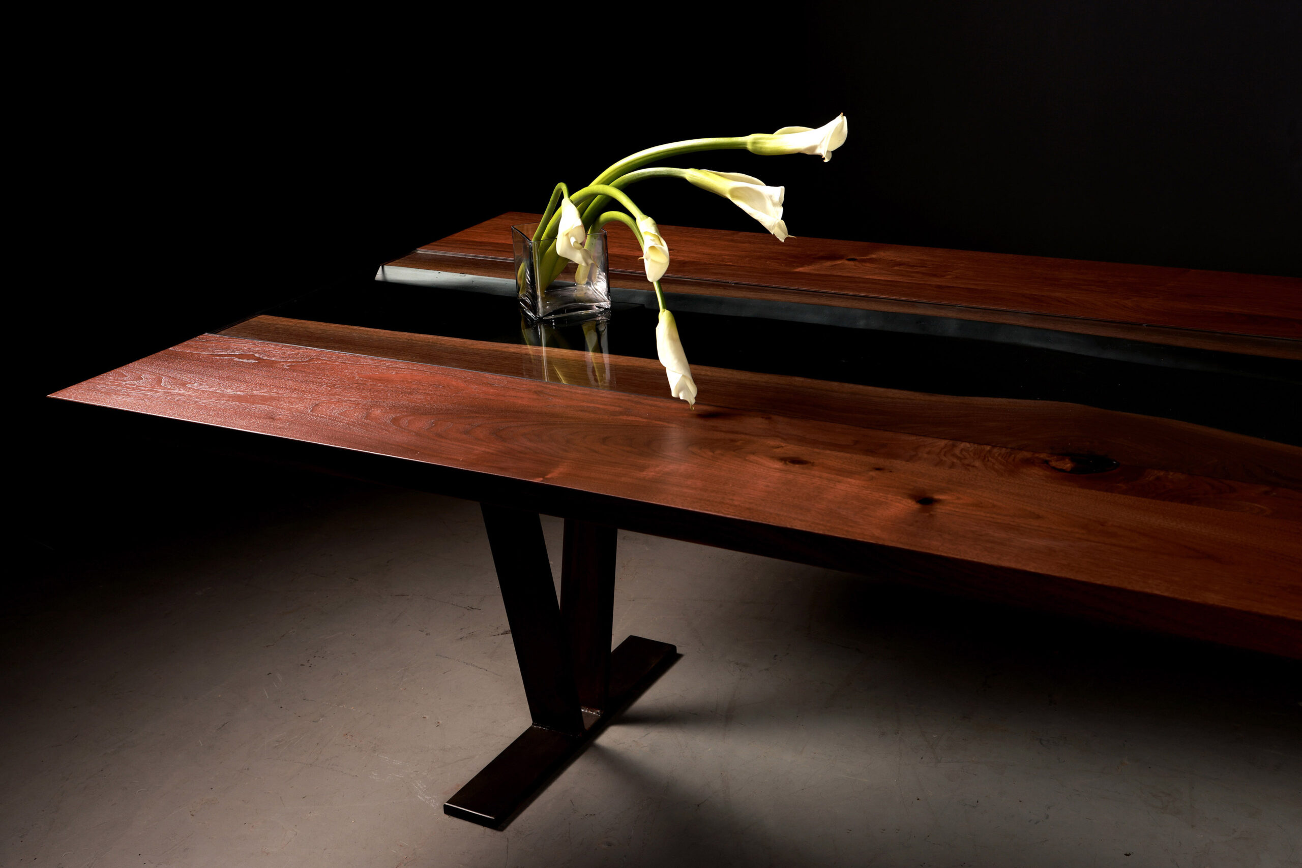 The Colorado River Table by SENTIENT blends live-edge slabs with a river-like glass inlay, resting on sculptural V-shaped legs. A tribute to nature’s beauty, handcrafted in Brooklyn.