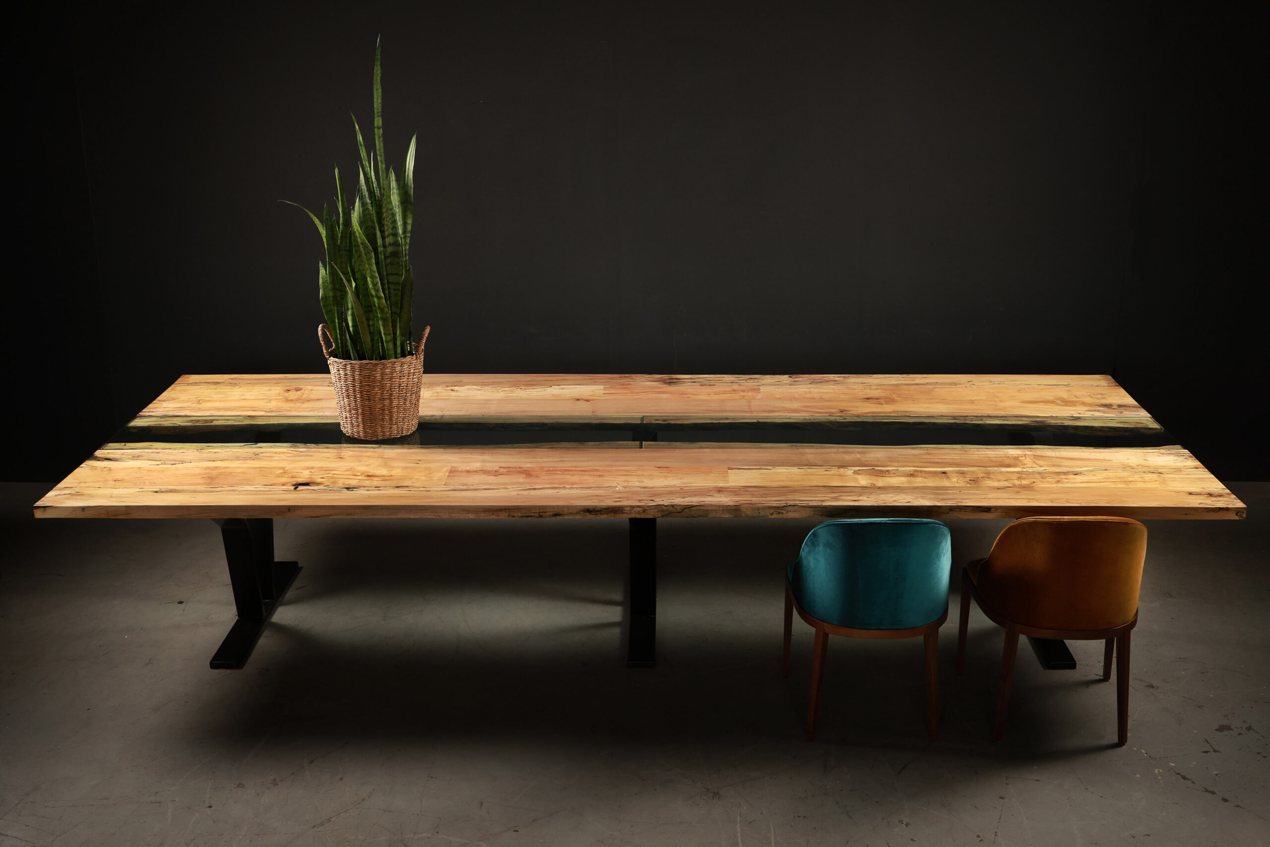 The Colorado Table seamlessly adapts to both dining and office environments, inspiring creativity, collaboration, and connection. Whether serving as a sophisticated dining centerpiece or an elegant conference table, its striking design elevates any setting. The live-edge spalted maple, paired with a flowing glass inlay, creates a dynamic yet harmonious aesthetic that sparks conversation and engagement. At SENTIENT, we prioritize customization, ensuring that each table is tailored to complement your unique space and lifestyle. Designed for both work and leisure, the Colorado Table embodies the perfect balance of artistry and functionality in everyday living.