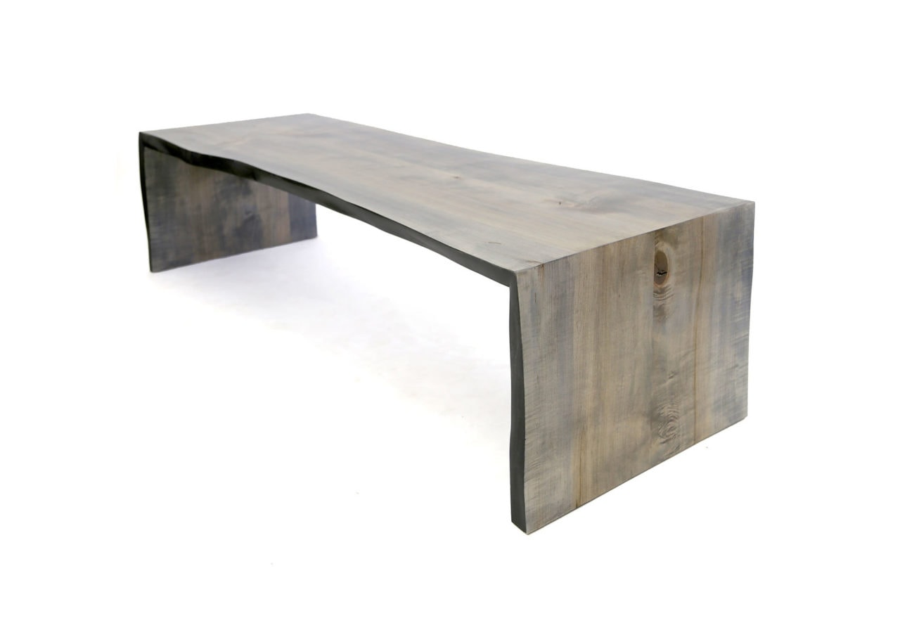 Designed to human scale or exaggerated, this coffee table can be subtle and simplistic or bold in its architectural form. Using locally sourced woods, this is a timeless design of heirloom quality. Our Waterfall Style Live Edge Coffee Table is fully customizable, without limits on size and material. Matching two pieces to recreate the cascading flow of nature, the slab coffee table is an art form that instantly draws attention.
