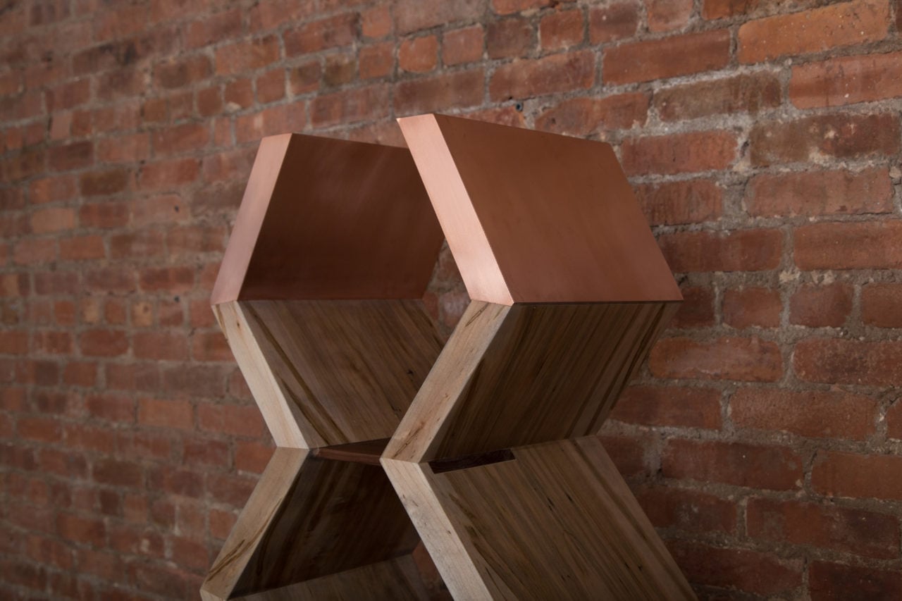 As with all Sentient artistic furniture pieces, each Friends bookcase is unique. As much a piece of sculpture and natural piece of art as it is a functional addition to a living space. This concept compromises of a pair of anthropomorphic bookcases in both Male and female forms. Handcrafted in Brooklyn these are the result of decades of design and manufacturing to blend art and furniture. With hints of copper and brass to balance the live edge wood. These pieces create a talking point in your space, people can admire the shelf as well as the books that rest upon them.