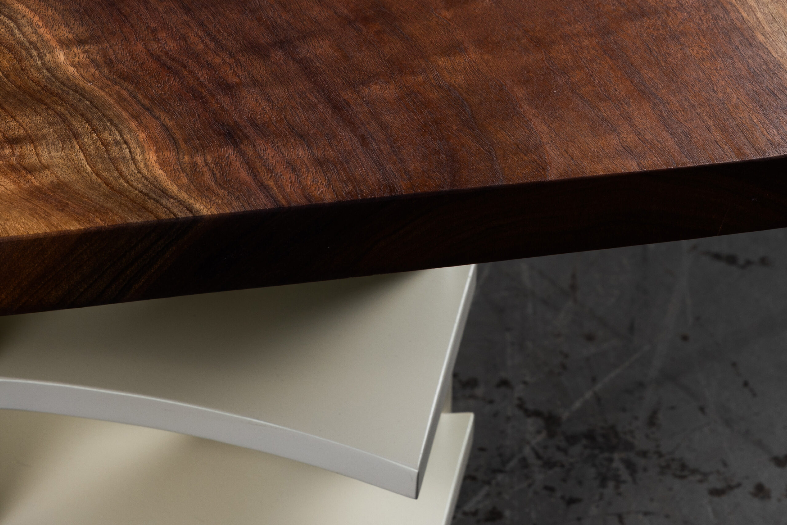 The Torreggiante Coffee Table by SENTIENT combines a cantilevered base and live-edge wood top, blending natural beauty and architectural design, handcrafted in Brooklyn.