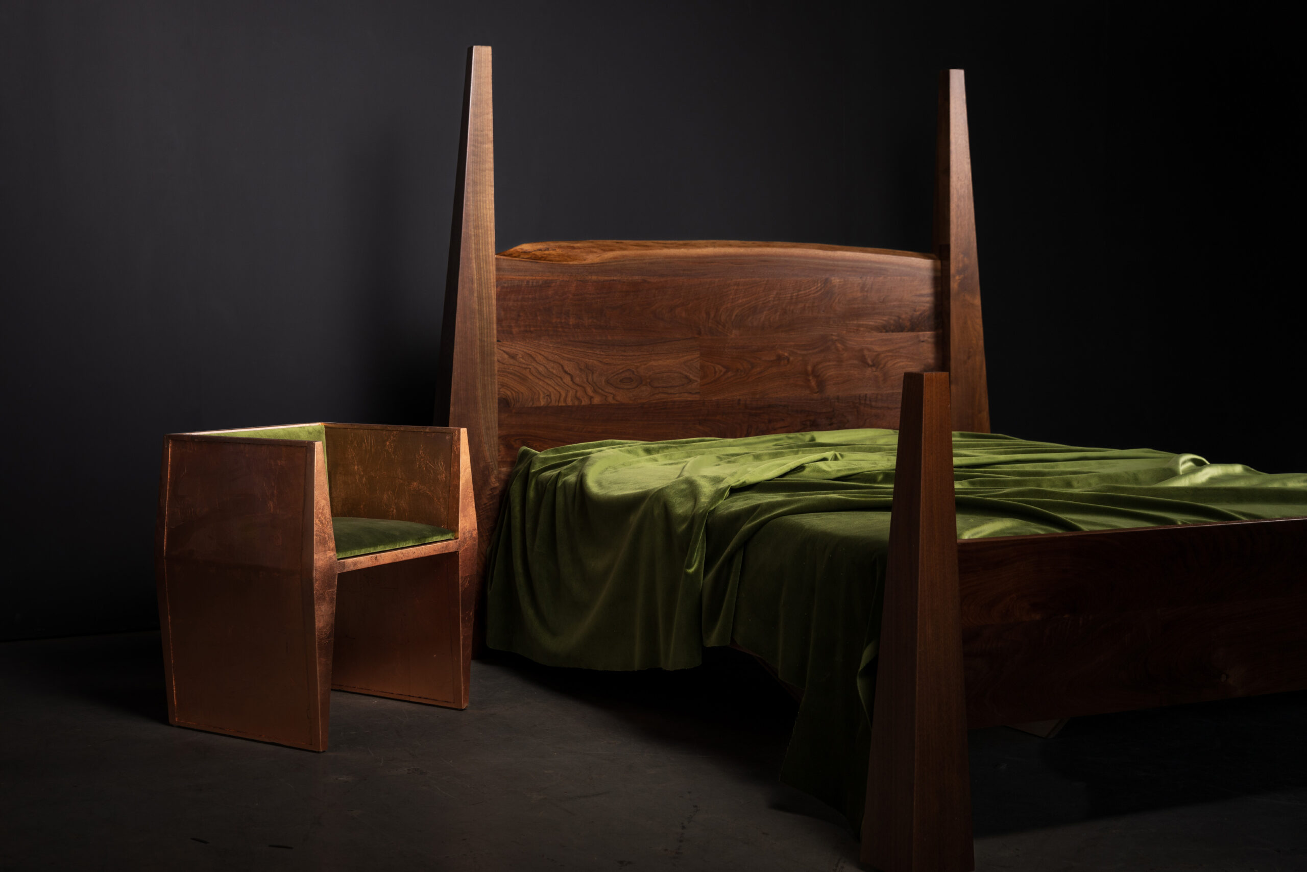 The Citadelle Bed from SENTIENT is an exquisite fusion of natural grandeur, artistic mastery, and meticulous craftsmanship. Designed by Nersi Nasseri, this exceptional piece captures the untamed beauty of nature while delivering an experience of luxurious rest. Its towering columns rise with elegant stateliness, cradling the realm of slumber and infusing the bedroom with a regal ambiance. The headboard, a testament to the untouched beauty of live-edge wood, follows the organic flow and unique texture of the material, drawing the eye and inviting touch to appreciate its distinct story.