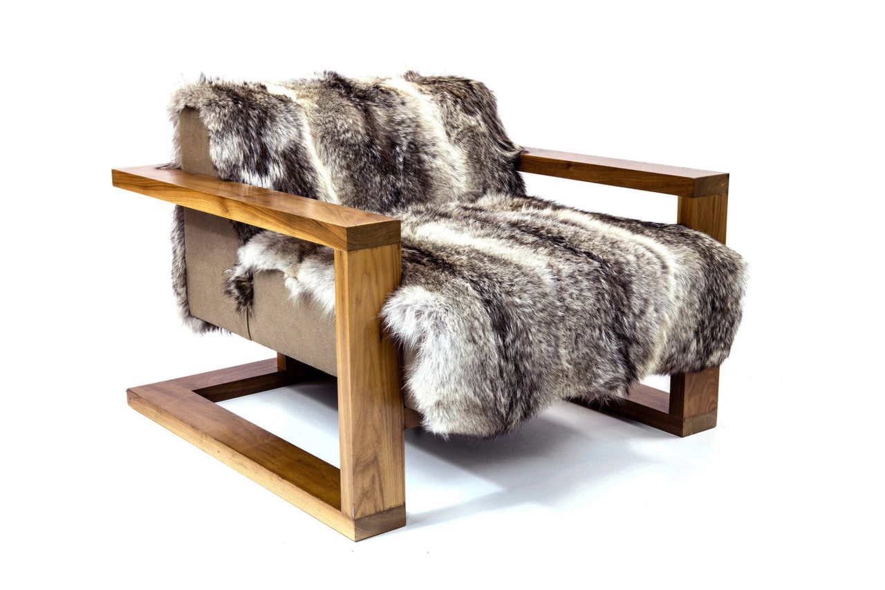 At home in Aspen, LA or NYC, our Caribou Lounge is actually upholstered with Coyote Fur. Secured in an exposed hardwood frame, this is a chair that is equally beautiful from any angle. The structure floats in a solid American black walnut frame which contrasts assuredly with the variations of the fur. Imposing and comfortable at the same time, the Caribou model is one of our most beloved luxury lounge chairs.
