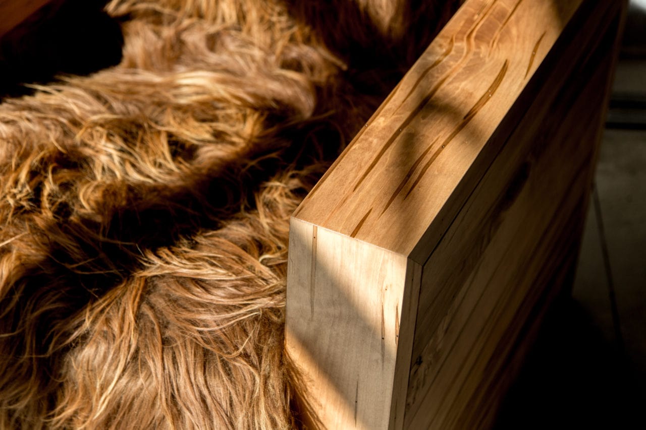- Material: Spalted Maple or reclaimed oak, Icelandic lamb wool, pocket springs, two layers of foam and one layer of Dacron