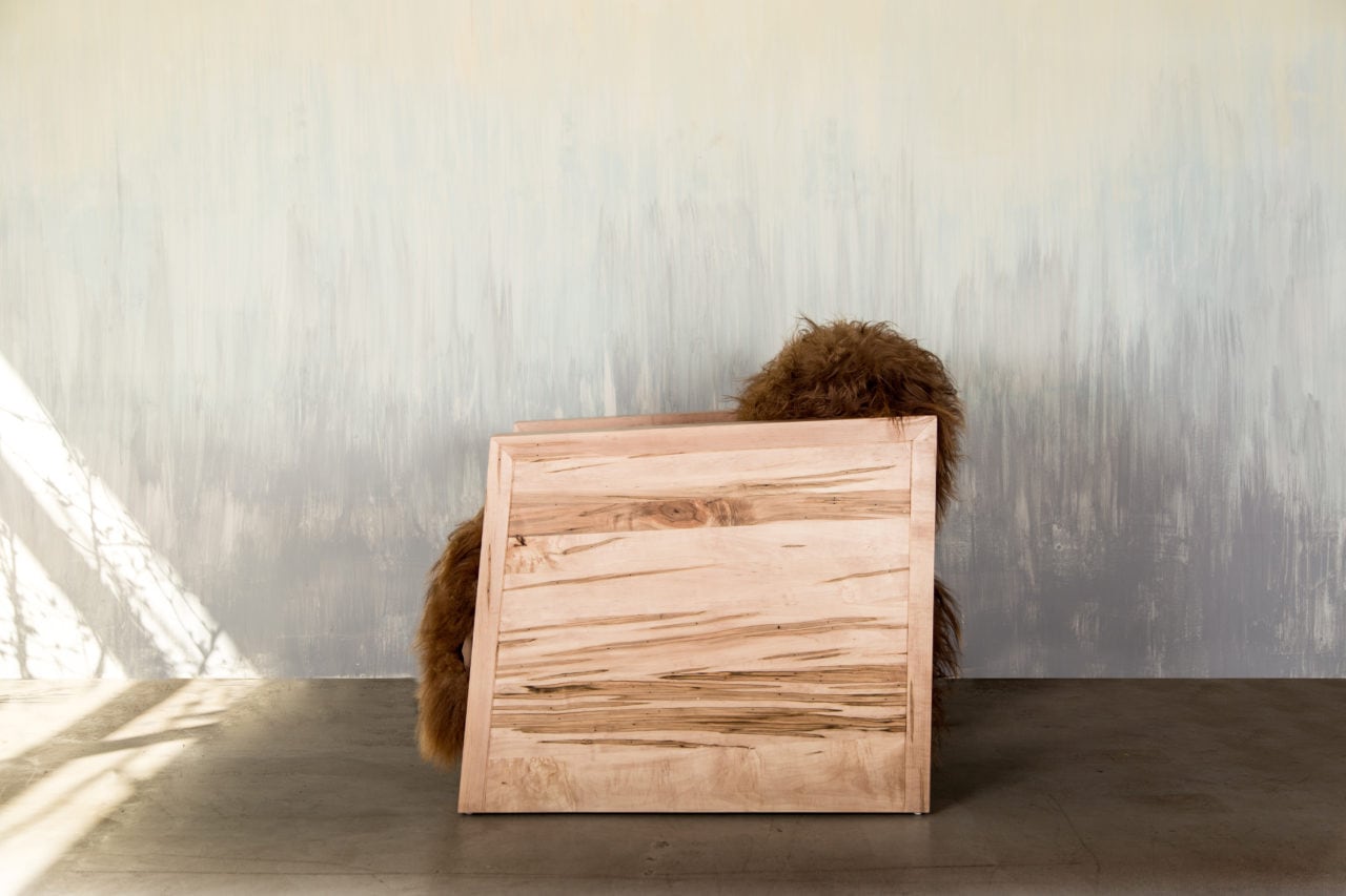 Each Joojay armchair is unique due to the combination of material. Spalted wood with its unique coloration and patterns brought to us by nature. Icelandic sheep wool with a variety of colors of wool inherent within the Icelandic sheep bred over 1000 years. One of the oldest, purest breeds in the world the sheep developed long hair wool to survive in the Icelandic environment. Wood nor Wool need to be stained or dyed Sentient let nature create the art to complement the design.