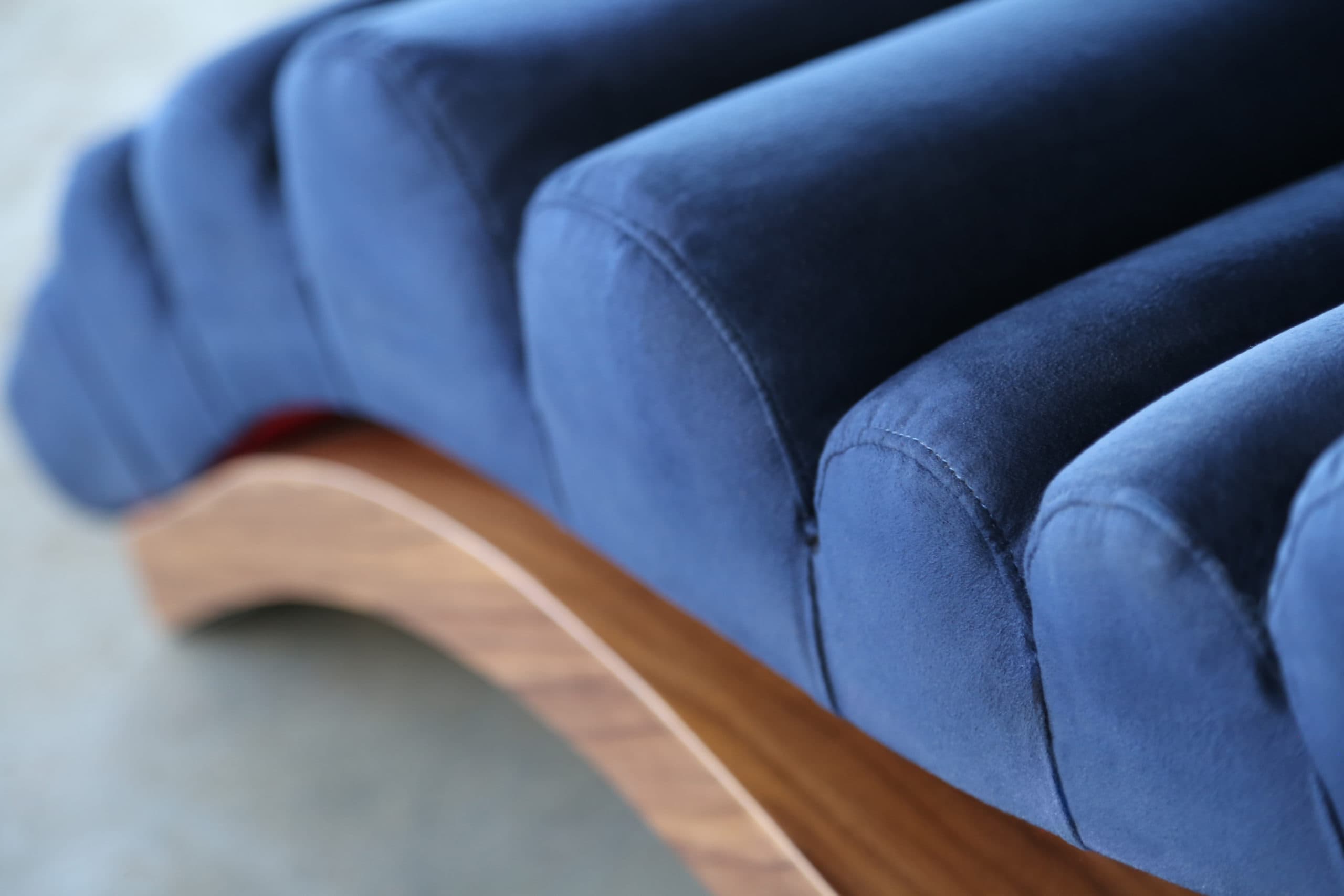 The WAVE is a luxury chaise lounge that offers timeless elegance and infinite customization to its original design. We encourage clients to call 1 (347) 309-6721 or visit our studio and workshop at 276 Greenpoint Avenue, Brooklyn, New York, where we can discuss every aspect of the project, including dimensions, upholstery, and stylistic considerations.