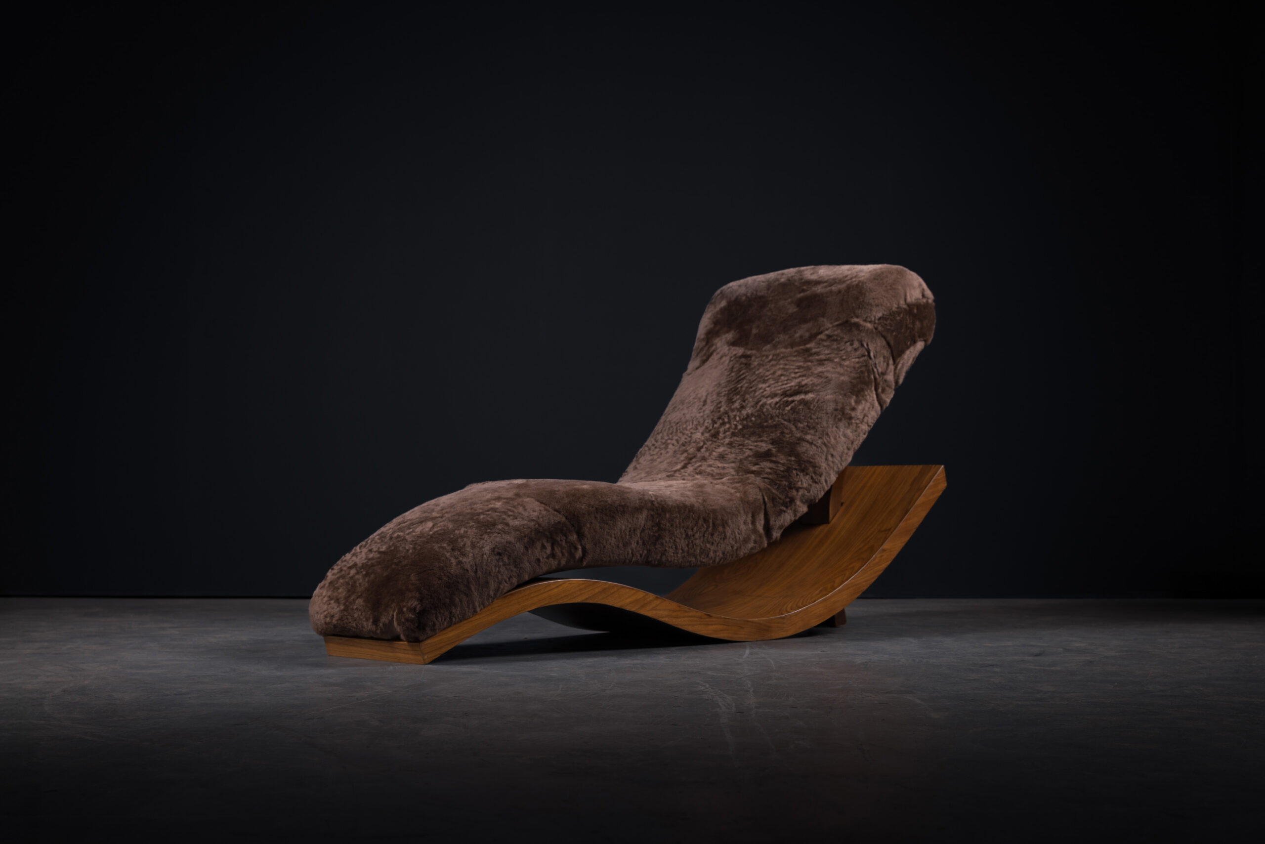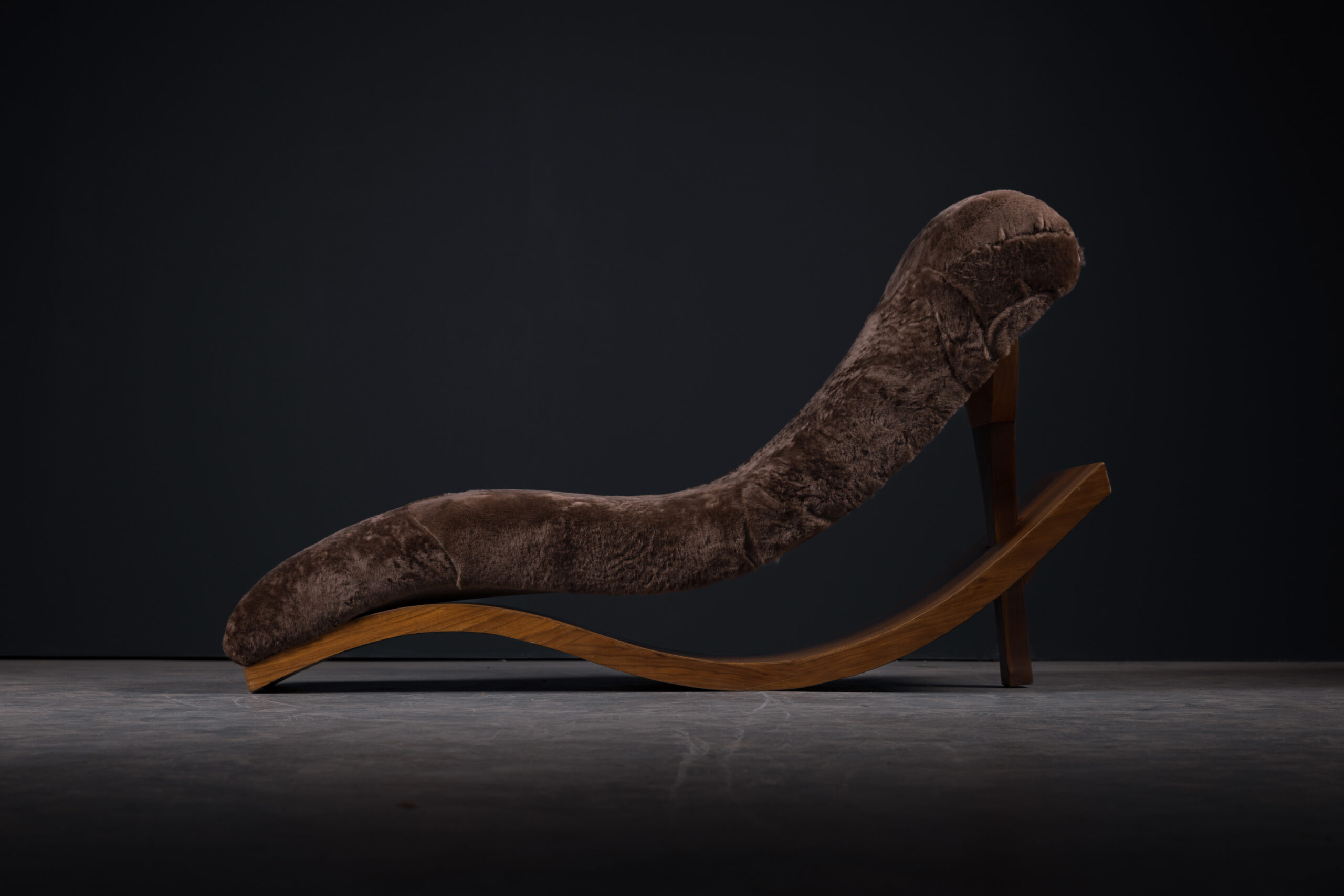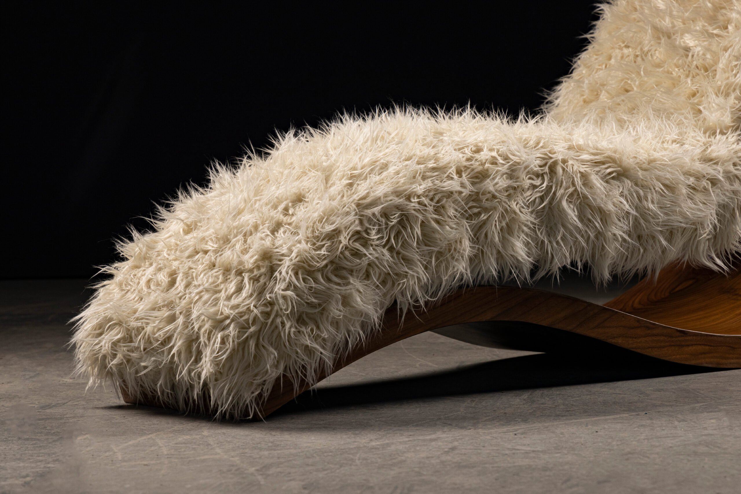 The Wave Chaise Lounge exemplifies its name with its upward curves and ripples. This one-of-a-kind piece is dynamic in its movement, representing a perfect example of the symbiosis between art and design, form and function. With each curved rib, one gets a sense of its intended rhythmic fluidity, expressed through a visual language that is creatively elegant yet delicately poised. As the center of our artistic furniture collaboration with Porsche for the Monterey Car Week 2019 exhibition, the two make a perfect pairing with their sublime flow and sensual dynamic form.